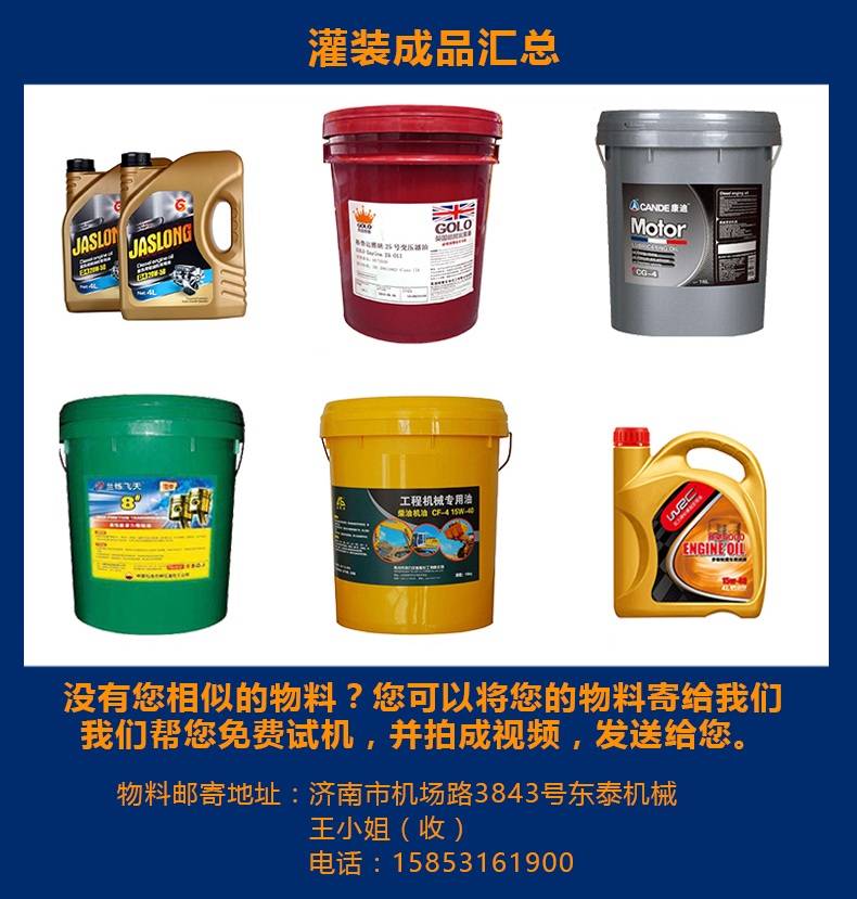 本机是根据润滑油的特性而设计的一款全自动称重式润滑油灌装机,该机设计紧凑合理,外形简洁美观大气,灌装量调节方便,精度高,借鉴灌装流程控制技术,进口彩色触摸屏人机界面,灌装进程实现一键式操作,性能稳定。采用两个316储油箱解决灌装量大的问题,一个进油口控制两个油箱的液位,一个储油罐分别控制5个灌装头,速度更快,精度更高。