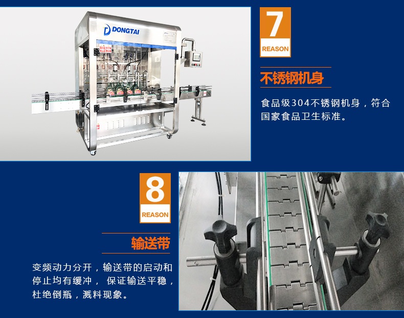 8.变频动力分开,输送带的启动和停止均有缓冲,保证输送平稳,杜绝倒瓶,溅料现象。
