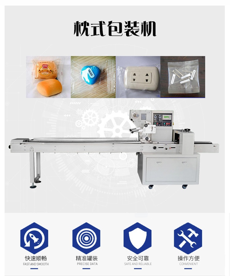 1.枕式包装机是目前国内新型的自动连续收缩 包装设备,采用石英远红外管加热,节电高效(节电15%以上);