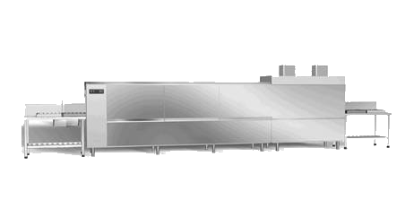 5、由减速机通过一对链轮运动,人工将碗碟插入输送带,碗碟先进入循环温洗涤水区,由上下两排喷嘴洗涤水进行冲洗 ,接着进入热水循环冲洗区,由上下两排喷嘴洗涤水进行冲洗,后,进入高温冲洗的漂洗区进行冲洗,洗净的碗碟由人工从输送带上取出。